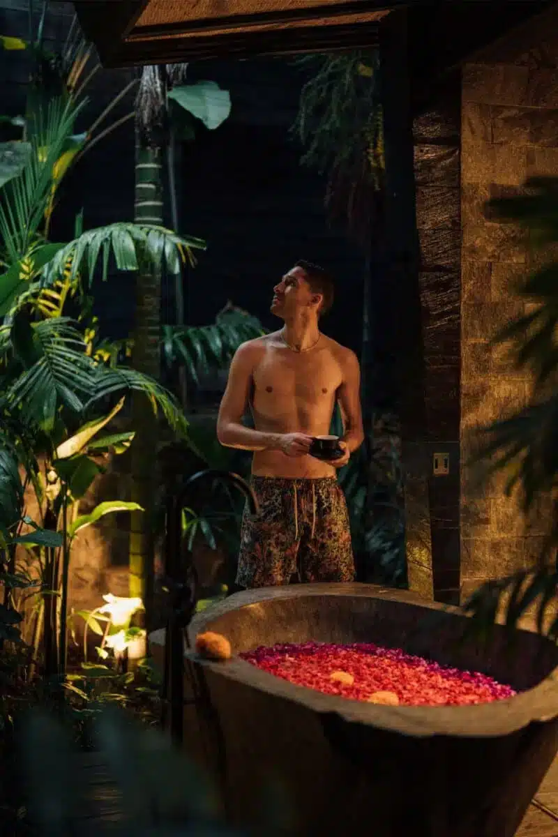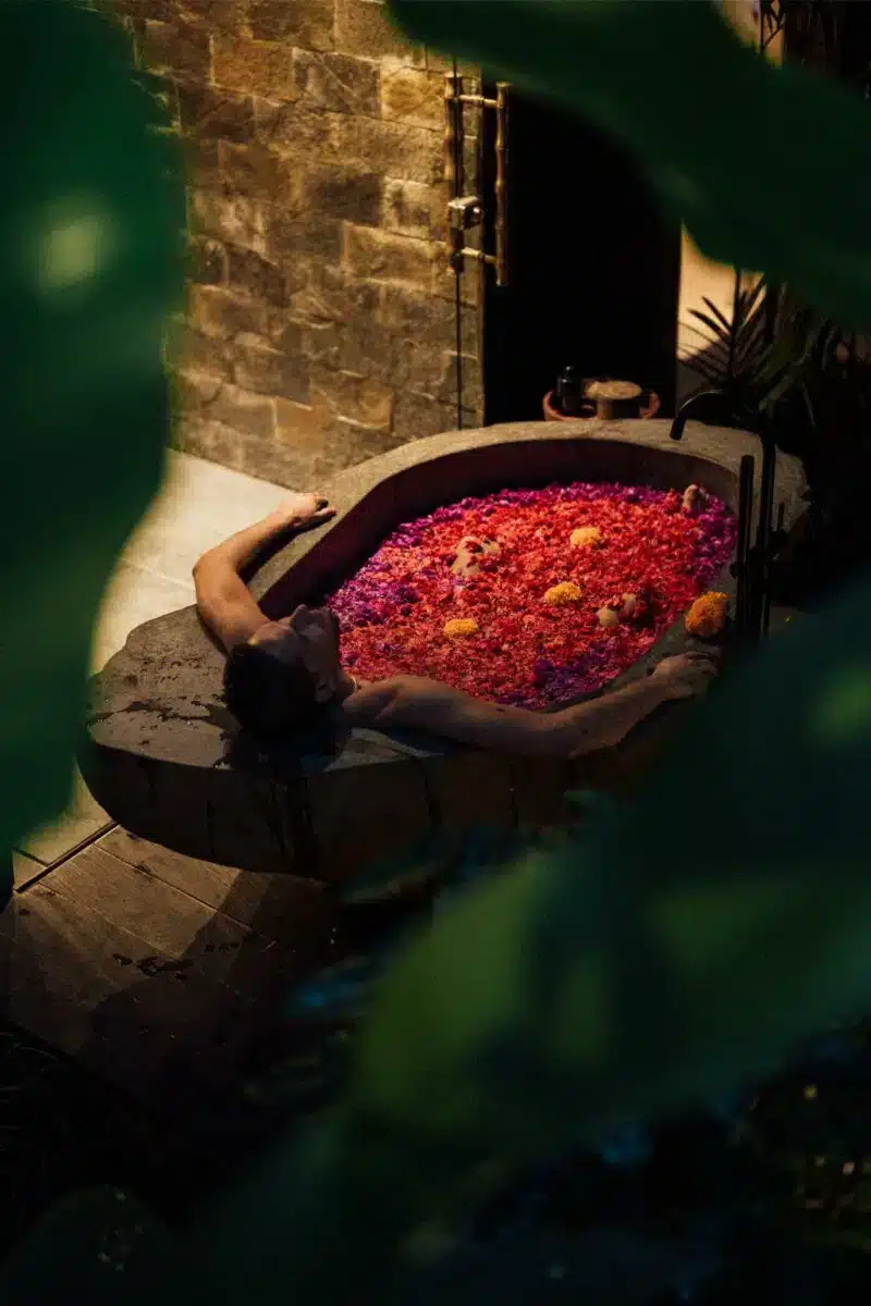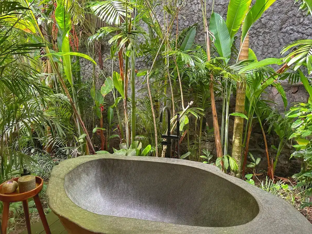 - My villa was impressive, featuring a very comfortable bed with stunning garden and pool views and a fantastic outdoor bathtub with a memorable flower bath experience.