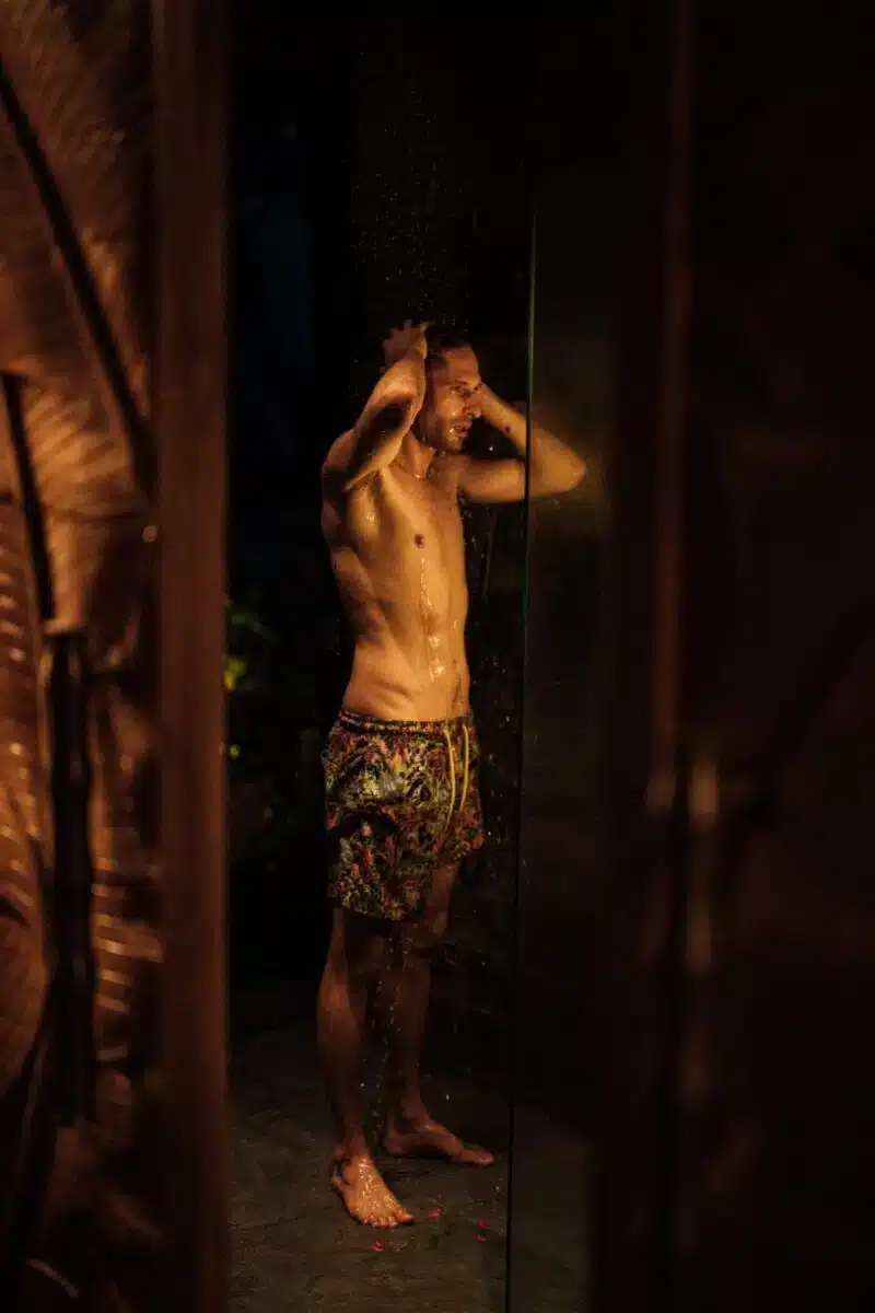 With its open glass door, the shower offers a panoramic view of the lush garden, transporting you to a jungle paradise with every rinse.
