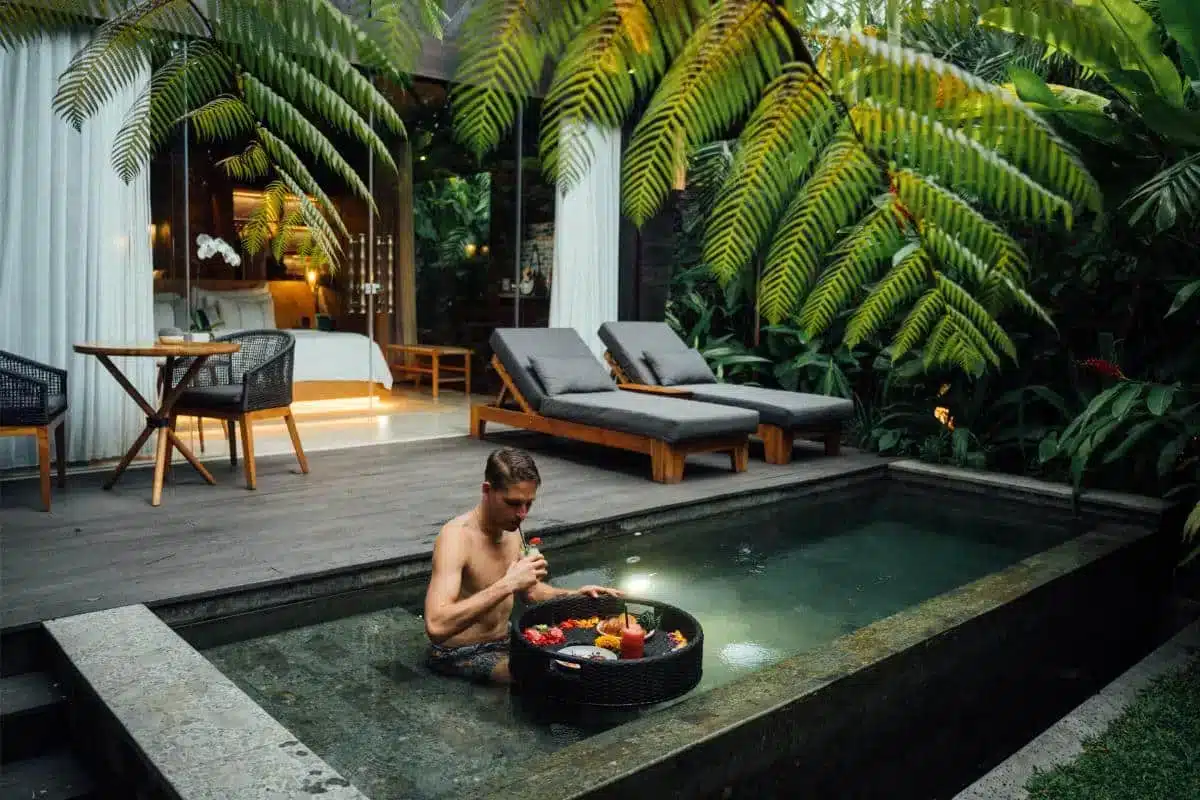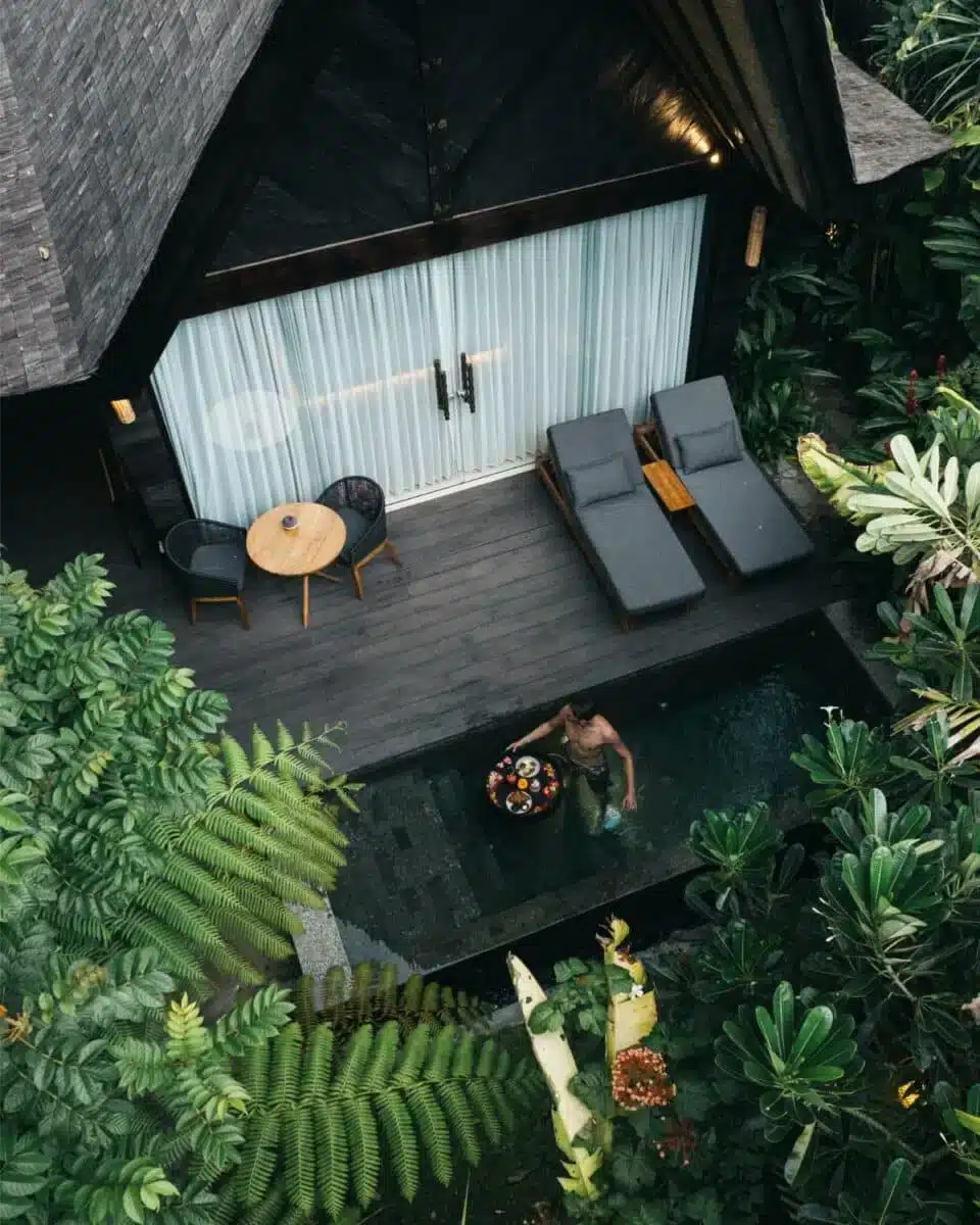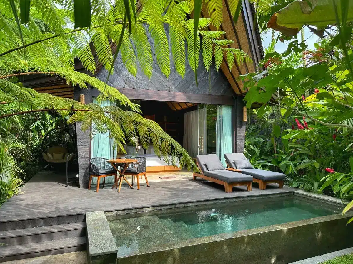While it does not feature a hammock and sunbeds, it still has a private plunge pool surrounded by lush greenery!