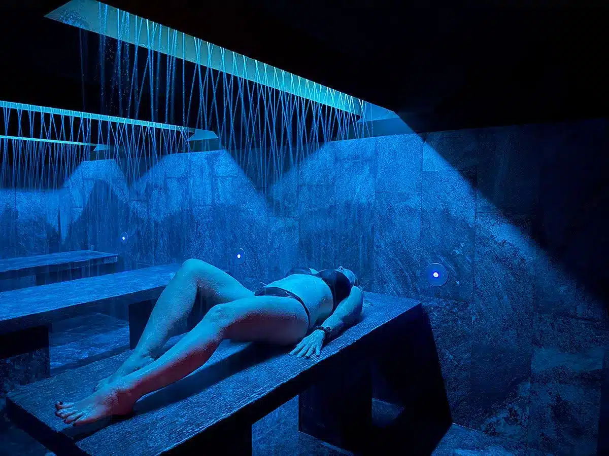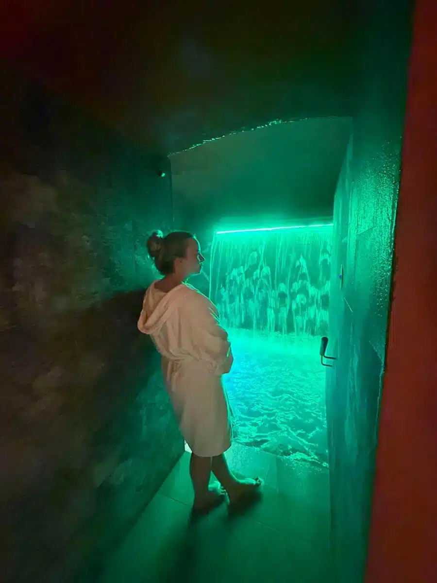 The more we wandered around, the more we realized how many unique rooms there were, not to mention the ones we’d expected – the salt room, rainfall corridors, cascading waterfalls, and cold plunge pools.