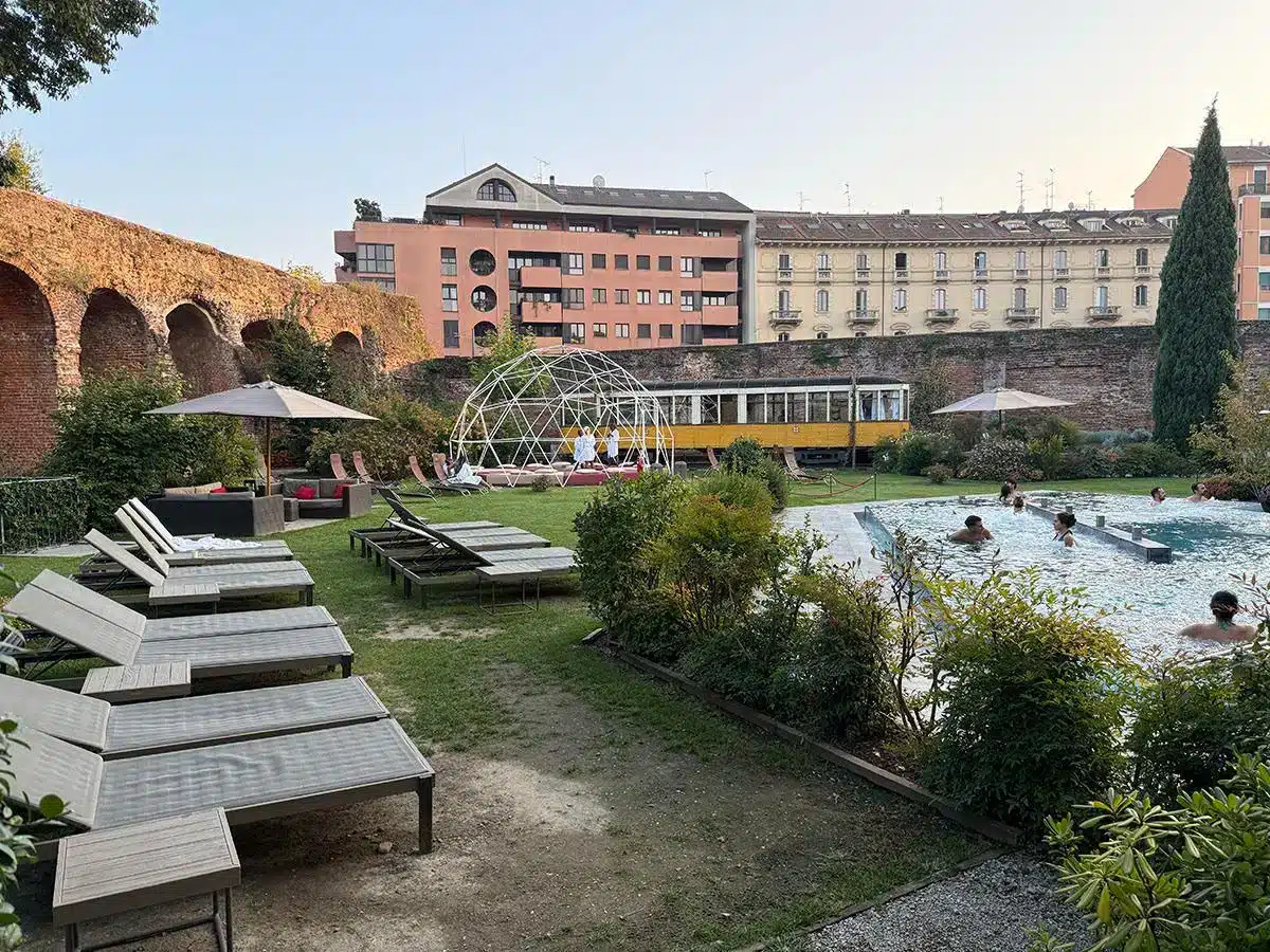 Comfy couches sat under umbrellas, surrounded by the Darsena Gardens, a completely private place to relax. Closeby, a converted Porta Romana Tram transformed into a sauna, our first experience of the afternoon. Our shoulders relaxed into the warmth.