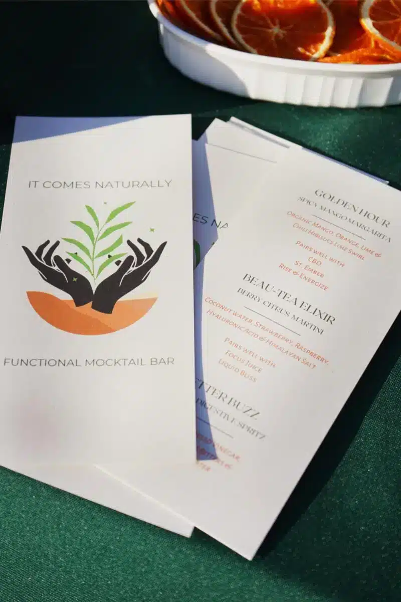 One of the first details I obsessed over was the beverage menu. As someone who practices functional nutrition and loves being in the kitchen, crafting something others will enjoy, I wanted every sip to be purposeful.
